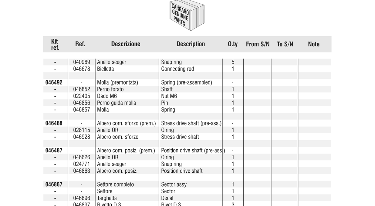 Pos Part Qty Description Kit Note